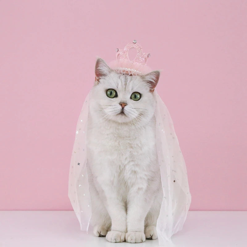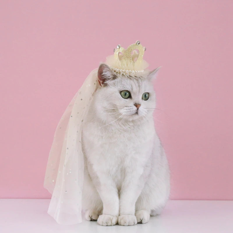 Tiara de gato, corona de gato, velo de novia para gato, ropa de boda para gato, disfraz de princesa para perros y gatos